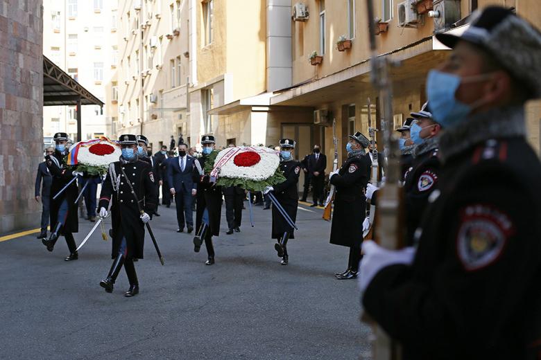 The Head of Armenian Police and the Minister of Internal Affairs of Georgia laid a wreath at the memorial wall honoring Police officers who died in the line of duty.