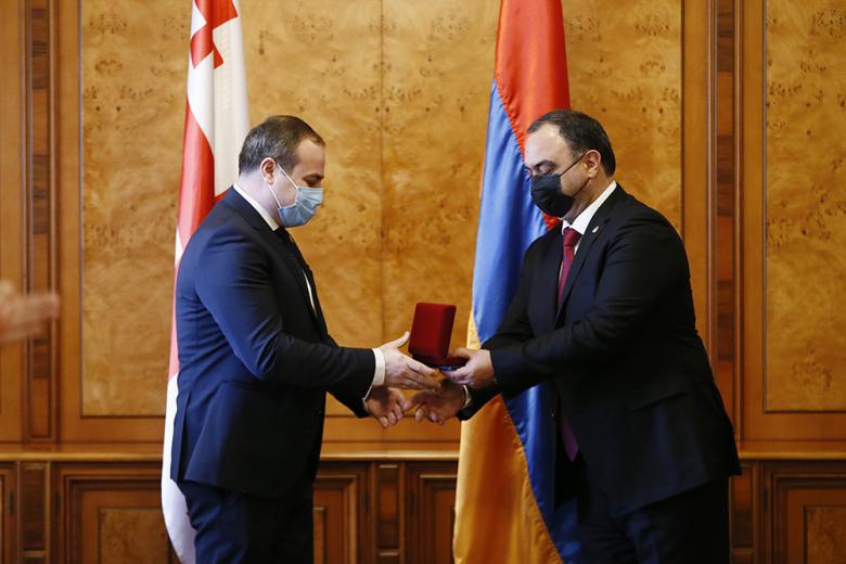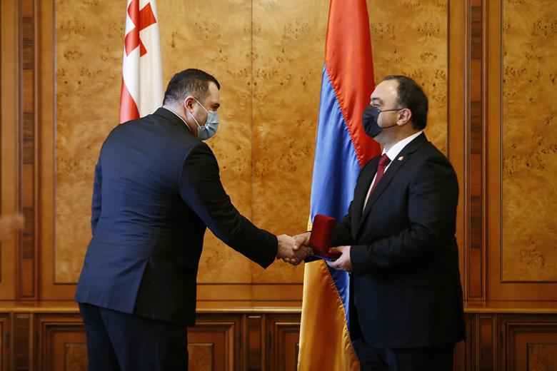 At the end of the meeting, by the order of the Head of the RA Police Vahe Ghazaryan, Minister of Internal Affairs of Georgia Vakhtang Gomelauri and delegation members were awarded medals "For Strengthening Cooperation".