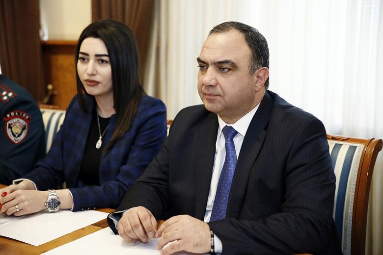 On March 2, Minister of Internal Affairs Vahe Ghazaryan received the delegation led by Bolat Imanbayev, Ambassador Extraordinary and Plenipotentiary of the Republic of Kazakhstan to RA. Among the attendees of the meeting were Arpine Sargsyan, Deputy Minister of Internal Affairs, Armen Mkrtchyan, Chief of Staff, and Armen Sargsyan, Head of Traffic Police Registration and Examination Division. Welcoming the guests, Vahe Ghazaryan highly appreciated the cooperation of the Ministries of Internal Affairs of the two countries not only in a bilateral format, but also within the framework of the Council of Ministers of Internal Affairs of the CIS member states. Ghazaryan expressed readiness to continue close cooperation for the benefit of joint fight against transnational crime, effective protection of human and civil rights.
