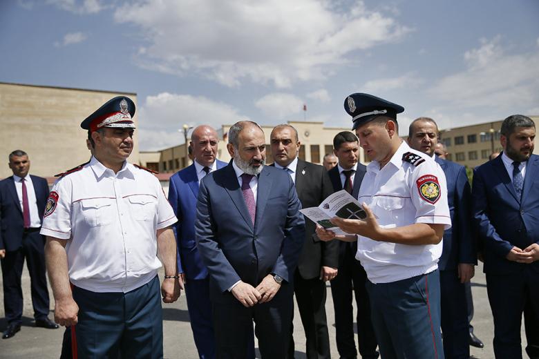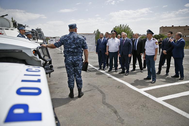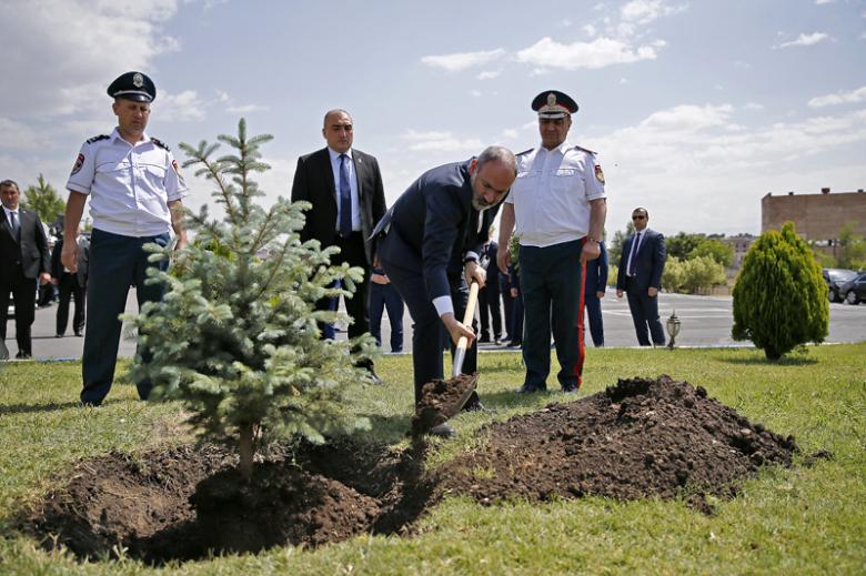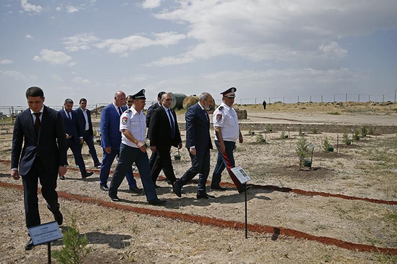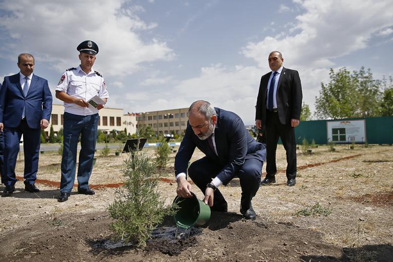Կազմավորման 30-ամյակի առթիվ վարչապետ Նիկոլ Փաշինյանը Ոստիկանության զորքերի վարչական շենքի բակում եղևնի տնկեց: Նիկոլ Փաշինյանը և գործադիր իշխանության ներկայացուցիչները ծանոթացան Ոստիկանության զորքերի սպառազինությանն ու տեխնիկային: