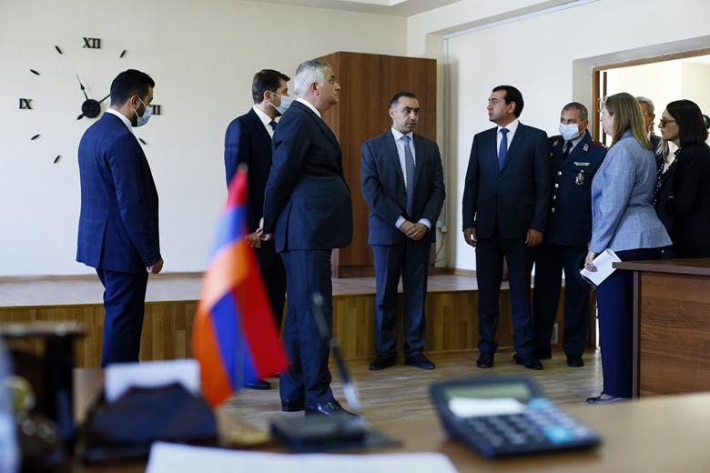 Հյուրերը Արա Ֆիդանյանի ուղեկցությամբ շրջեցին բաժնի տարածքում, ծանոթացան 2022 թվականին մարզում ստեղծվելիք պարեկային ծառայության ստորաբաժանման և օպերատիվ կառավարման կենտրոնի տեղակայման վայրին, քննարկեցին աշխատանքային պայմանների բարելավմանն ուղղված հարցեր: