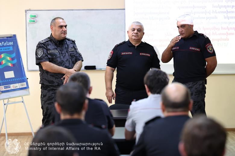 Արամ Հովհաննիսյանը զրուցել է դասախոսների և սովորողների հետ, թե՛ գործող ոստիկաններից և թե՛ քաղաքացիական անձանցից հետաքրքրվել ուսումնական գործընթացով։