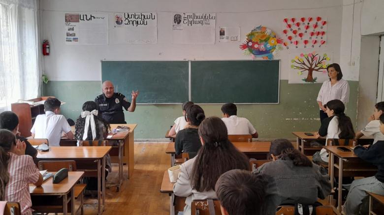 Մարզի համայնքային ոստիկաններն ու պարեկները դպրոցներում հանդիպումների ժամանակ ոչ միայն ներկայացրել են ճանապարհային երթևեկության կանոնները, այլև շեշտադրել, որ դրանց հետևելը բխում է կյանքի ու առողջության պահպանման անհրաժեշտությունից: