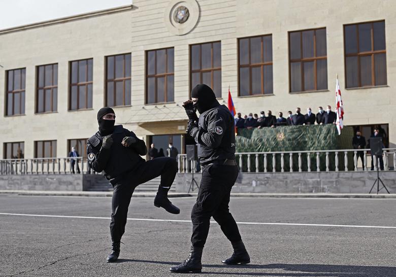 Նույն օրը Վախթանգ Գոմելաուրիի գլխավորած պատվիրակությունը եղավ ոստիկանության զորքերում։ Նրանց ներկայացվեցին ոստիկանության զորքերի զորամասերի սպառազինությունը, հատուկ միջոցները, զրահատեխնիկան, ծառայողական տրանսպորտային միջոցները և այլն։