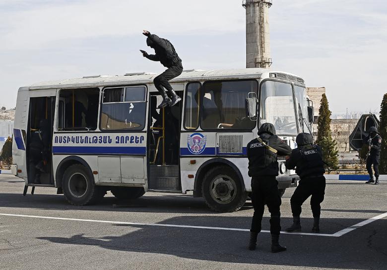 Ոստիկանության զորքերի ծառայողները հասարակական կարգի պահպանման ցուցադրական ելույթներ ունեցան։