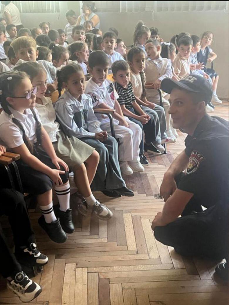 Դպրոցներում հանդիպում-զրույցների ժամանակ աշակերտների մոտ ձևավորվում է անվտանգային կանոնների պահպանման և ոստիկանության ծառայողին որպես ավագ ընկեր և օգնական ընկալելու մշակույթը։
