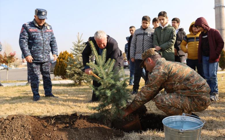 Դպրոցի սաները ոստիկանության զորքերի ծառայողների հետ տնկել են ծառեր, նաև անվանական եղևնի՝ ի նշանավորում բարեկամության։