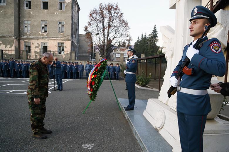 Ներկաները ծաղկեպսակ և ծաղիկներ խոնարհեցին Արցախյան ազատամարտում զոհված ոստիկանների հիշատակը հավերժացնող հուշակոթողին։