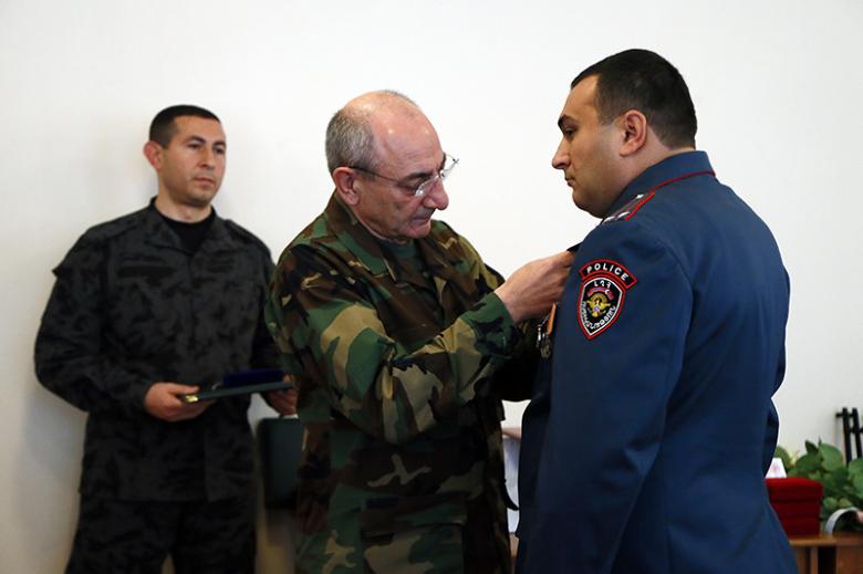 Հանդիսավոր արարողությանը Արցախի Հանրապետության ոստիկանության մի շարք ծառայողներ պարգևատրվեցին շքանշաններով, մեդալներով, այլ պարգևներով։
