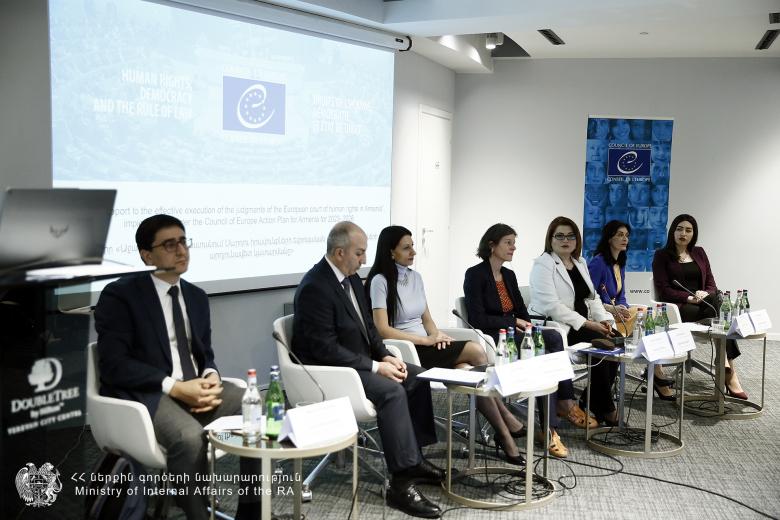 Ապրիլի 28-ին Երևանում տրվեց Եվրոպայի խորհրդի «Աջակցություն Հայաստանում Մարդու իրավունքների եվրոպական դատարանի վճիռների արդյունավետ կատարմանը» ծրագրի հանդիսավոր մեկնարկը, որի շրջանակներում բացման խոսքով հանդես եկավ Ներքին գործերի նախարարի տեղակալ Արփինե Սարգսյանը։