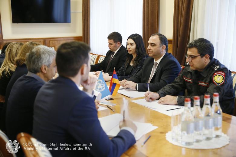 Ներքին գործերի նախարարը հատկապես առանձնացրել է ՄԱԿ-ի Զարգացման ծրագրի հետ համագործակցությունը ԵՄ կողմից ֆինանսավորվող «Հաշվետու հաստատություններ և մարդու իրավունքների պաշտպանությունը Հայաստանում» ծրագրի բաղադրիչներից մեկի՝ «Ոստիկանության բարեփոխումների» շրջանակներում: Ծրագիրն իրականացվում է ՄԱԿ-ի Զարգացման ծրագրի, ՅՈՒՆԻՍԵՖ-ի, ՄԱԿ-ի բնակչության հիմնադրամի և ԵԱՀԿ-ի կողմից։