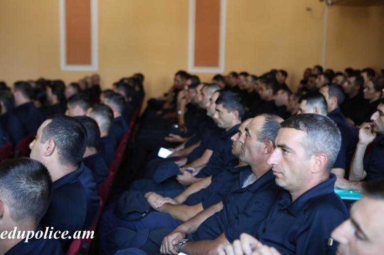 Օգոստոսի 2-ին ՀՀ ՆԳՆ կրթահամալիրում տեղի ունեցավ պարեկային ծառայության վերջին՝ 4-րդ հոսքի սովորողների հանդիպումը ՀՀ ՆԳՆ ոստիկանության պարեկային ծառայության պետ, ոստիկանության գնդապետ Արթուր Խուդինյանի և ՀՀ ՆԳՆ ոստիկանության կրթահամալիրի պետ, ոստիկանության գնդապետ Մանուկ Մուրադյանի հետ։