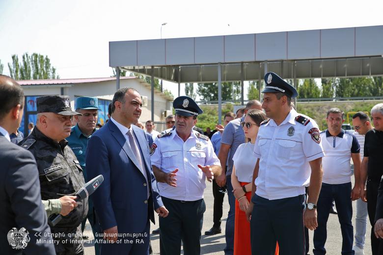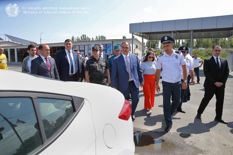 Վարորդական իրավունքի վկայականի գործնական քննության համար նախատեսված ավտոդրոմում Ներքին գործերի նախարարը ծանոթացել է պայմաններին, քննական մեքենաների տեխնիկական հնարավորություններին, տվել կոնկրետ ցուցումներ ու հանձնարարականներ։