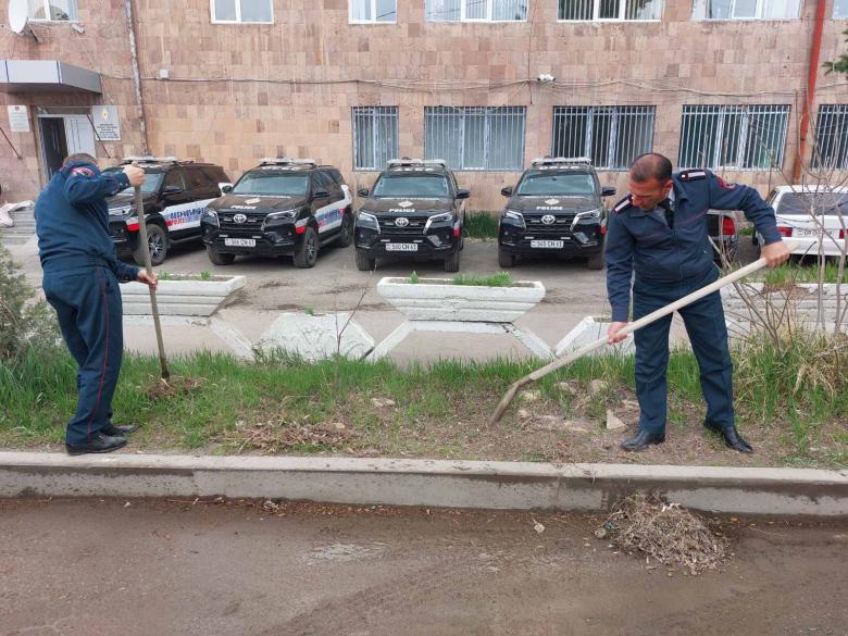 Ոստիկանները վարչական շենքերի հարակից տարածքներում և հասարակական վայրերում կատարել են մաքրման և բարեկարգման աշխատանքներ։