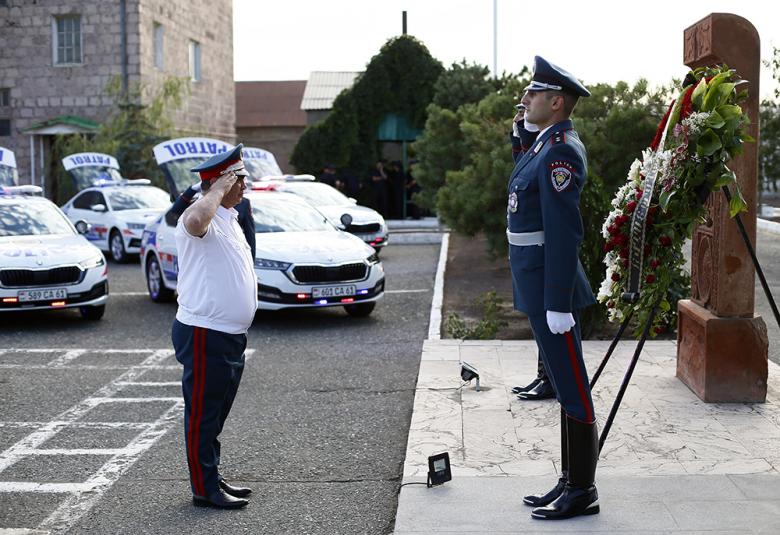 Ոստիկանության պետը նախ ծաղիկներ խոնարհեց ծառայողական պարտականությունները կատարելիս զոհված ոստիկանների հուշարձանին։