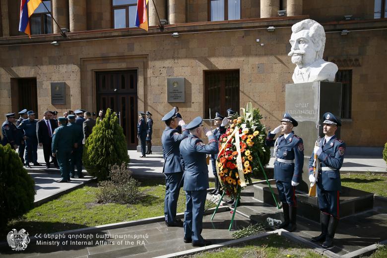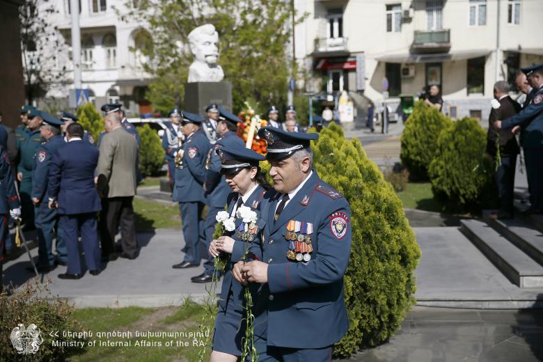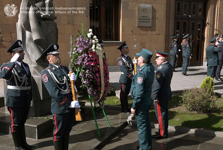 ՀՀ ներքին գործերի նախարար Վահե Ղազարյանը, փոխնախարարներ Արփինե Սարգսյանը, Դավիթ Համբարյանը, ոստիկանության պետ-ՆԳ նախարարի տեղակալ Արամ Հովհաննիսյանը, փրկարար ծառայության տնօրեն-ՆԳ նախարարի տեղակալ Կամո Ցուցուլյանն ու ոստիկանության ղեկավար կազմը ծաղկեպսակներ դրեցին ու ծաղիկներ խոնարհեցին Հայաստանի ներքին գործերի առաջին նախարար Արամ Մանուկյանի կիսանդրուն և «Իրավակարգի զինվորին» հուշարձանին։