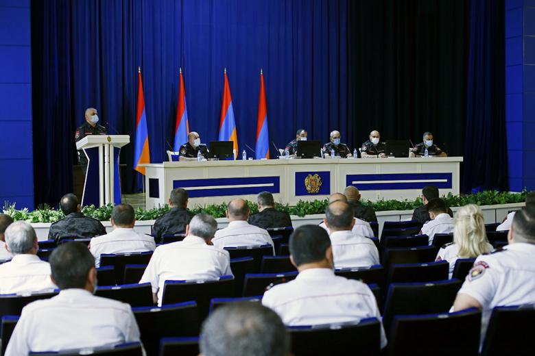 31 июля в Полиции состоялось совещание по итогам оперативно-служебной деятельности служб и территориальных органов за первое полугодие 2020 года, которое возглавлял начальник Полиции Ваге Казарян.