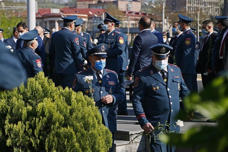 16 апреля - день формирования полиции. По случаю 103-й годовщины создания полиции члены Коллегии и высокопоставленные офицеры Полиции, во главе с начальником Полиции Ваге Казаряном, возложили венки и цветы к памятникам Первому министру внутренних дел Республики Армения Араму Манукяну и Солдату правопорядка.
