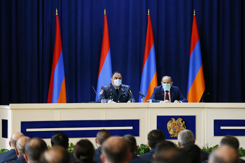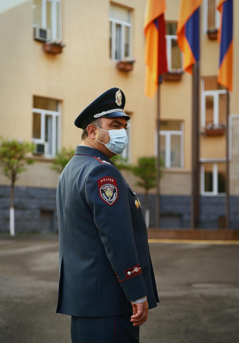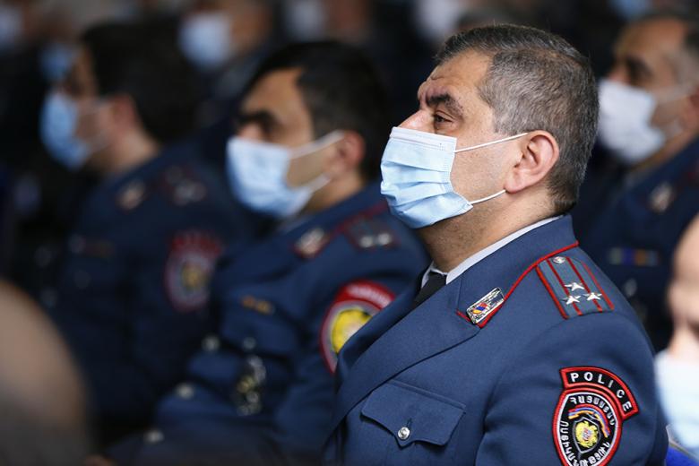 Вначале присутствующие почтили минутой молчания память погибших в ходе 44-дневной войны полицейских, после чего со вступительной речью выступил начальник Полиции Ваге Казарян. Он поздравил полицейских, ветеранов Полиции и семьи полицейских с профессиональным праздником. Ваге Казарян поблагодарил семьи погибших полицейских. Начальник Полиции поблагодарил полицейских за добросовестную службу в нелегком деле по поддержанию правопорядка и законности, поблагодарил офицеров, которые с первых дней войны были задействованы в выполнении боевых задач и полностью выполнили свой долг перед Родиной.