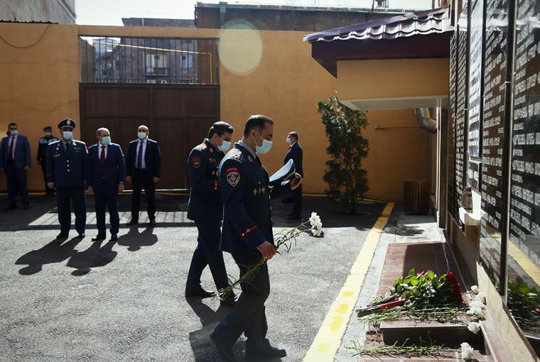 В тот же день премьер-министр РА Никол Пашинян посетил Полицию. Премьер-министр, начальник Полиции и высокопоставленные офицеры возложили цветы к «Стене памяти» в честь погибших во имя Отечества полицейских и минутой молчания отдали дань уважения и памяти.