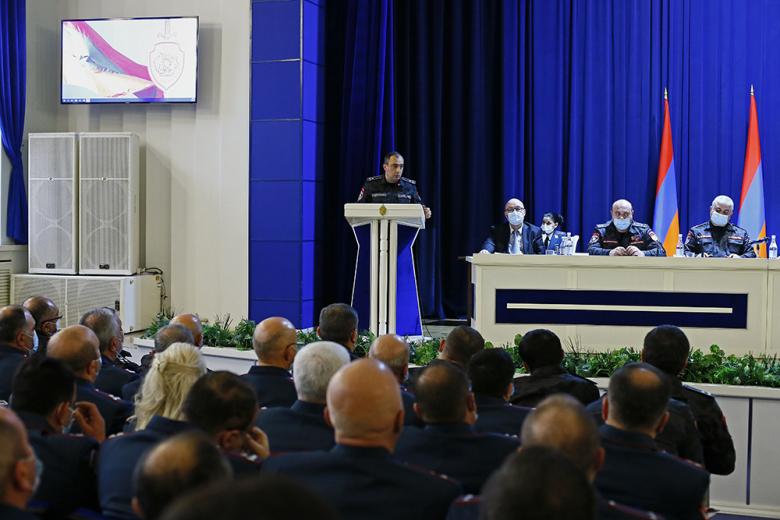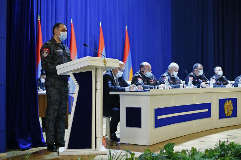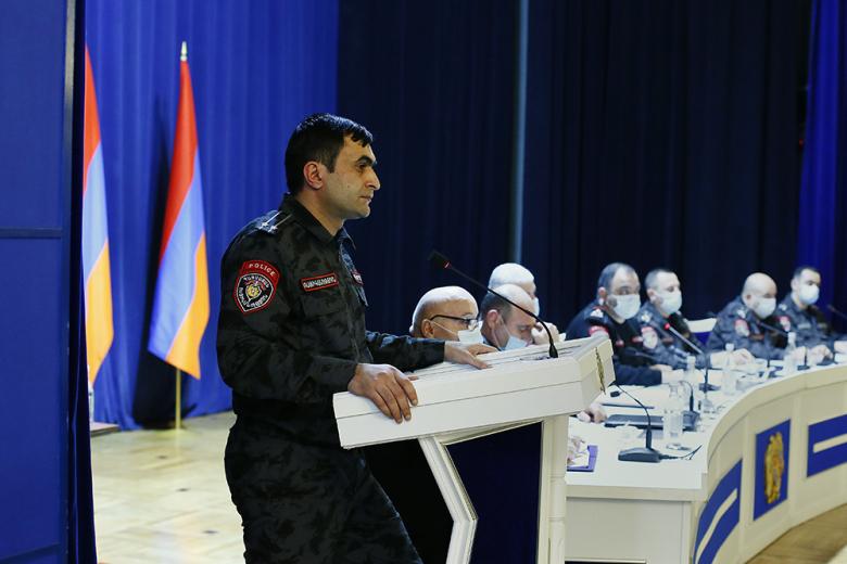 С докладом об итогах оперативно-розыскной деятельности служб и территориальных органов Полиции за 2020 год выступил первый заместитель начальника Полиции Арам Оганнисян.