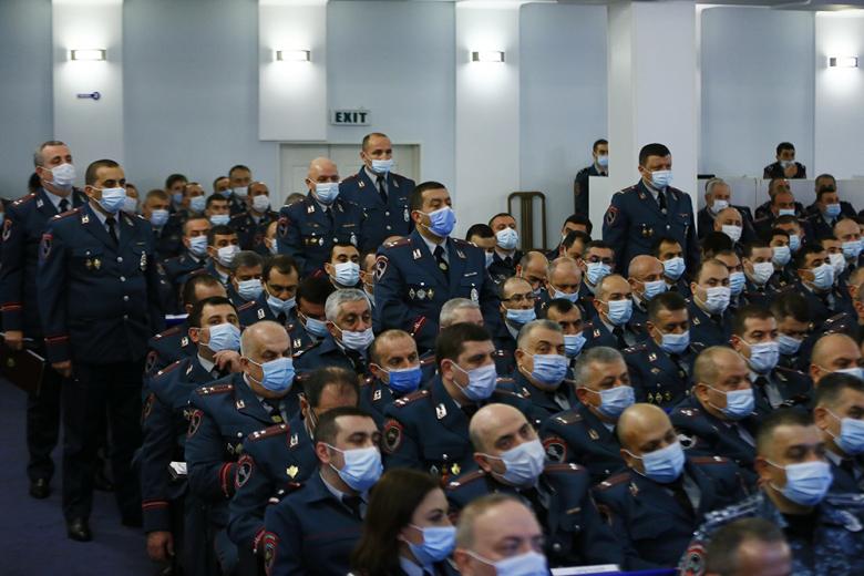 В своем вступительном слове начальник полиции Ваге Казарян отметил, что проблемы семей полицейских, погибших и раненых во время боевых действий, всегда должны быть в центре внимания, и их необходимо решать. Он также поблагодарил служащих Полиции, в частности офицеров Войск Полиции и Патрульно-постового полка, за добросовестный труд и высокую ответственность в сложный и напряженный период.