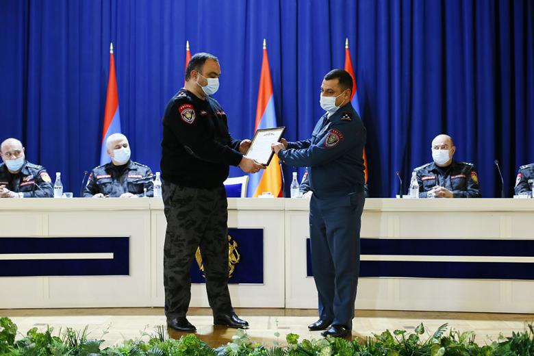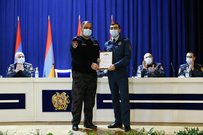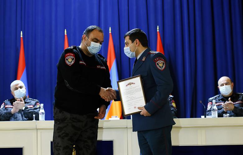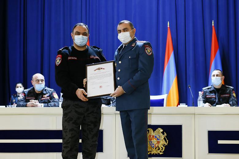 По окончании заседания коллегии решением специальной комиссии Полиции были награждены Шенгавитский отдел Управления города Еревана и Арташатский отдел Управления Араратского марза Полиции были признаны лучшими в оперативно-служебной деятельности 2020 года.