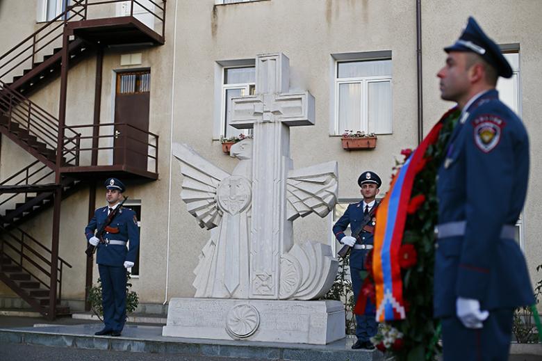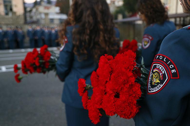 Ներկաները ծաղկեպսակ և ծաղիկներ խոնարհեցին Արցախյան ազատամարտում զոհված ոստիկանների հիշատակը հավերժացնող հուշակոթողին։