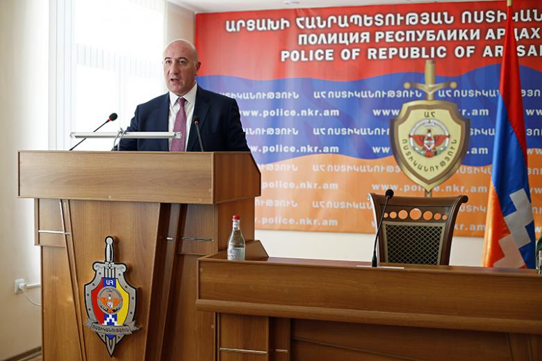 Ողջունելով ներկաներին և շնորհավորելով մասնագիտական տոնի առթիվ՝ Արցախի Հանրապետության ոստիկանության պետ, գեներալ-լեյտենանտ Լևոն Մնացականյանը կարևորեց այն դերակատարումը, որն ունեցել և ունի ոստիկանությունը Արցախի Հանրապետության շուրջ 30-ամյա պետականության կայացման ու ամրապնդման գործում։