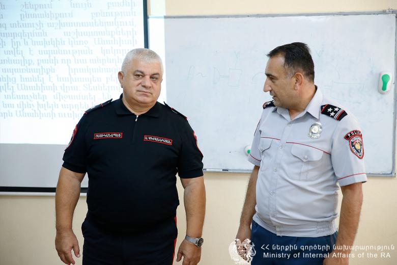 Արամ Հովհաննիսյանը զրուցել է դասախոսների և սովորողների հետ, թե՛ գործող ոստիկաններից և թե՛ քաղաքացիական անձանցից հետաքրքրվել ուսումնական գործընթացով։