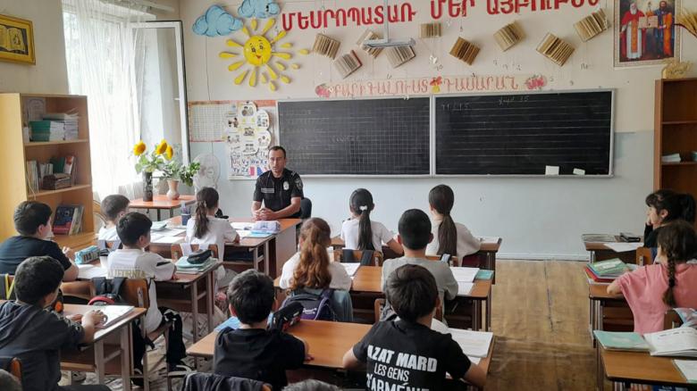 Մարզի համայնքային ոստիկաններն ու պարեկները դպրոցներում հանդիպումների ժամանակ ոչ միայն ներկայացրել են ճանապարհային երթևեկության կանոնները, այլև շեշտադրել, որ դրանց հետևելը բխում է կյանքի ու առողջության պահպանման անհրաժեշտությունից: