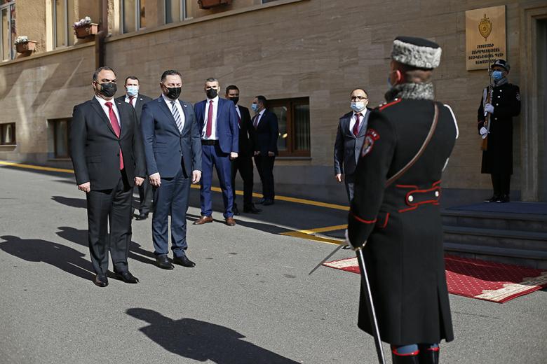 ՀՀ ոստիկանության վարչական շենքում Վրաստանի ներքին գործերի նախարարության պատվիրակությանն ընդունեց ՀՀ ոստիկանության պետ, ոստիկանության գեներալ-մայոր Վահե Ղազարյանը։