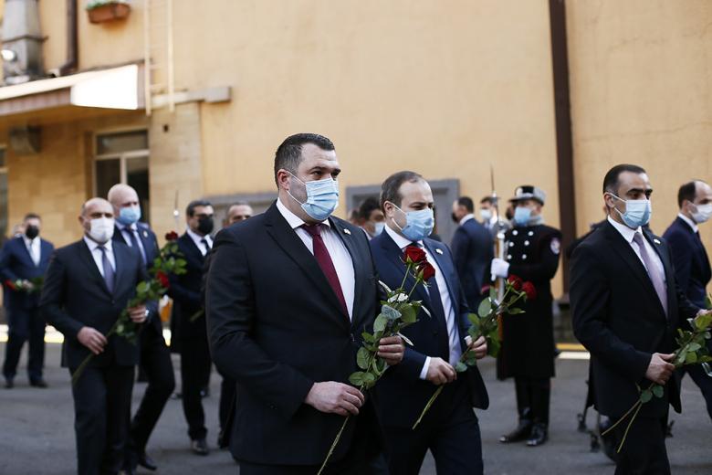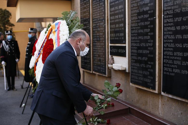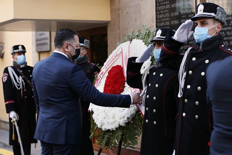 Հայաստանի ոստիկանության պետն ու Վրաստանի ներքին գործերի նախարարը ծաղկեպսակ դրեցին և հարգանքի տուրք մատուցեցին ծառայողական պարտականությունները կատարելիս զոհված ոստիկանների հիշատակը հավերժացնող հուշապատի մոտ։