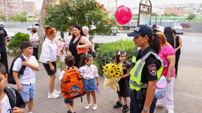 Ինչպես ամեն տարի, այս տարի ևս դպրոցների բակերում գիտելիքի ճանապարհը բռնած աշակերտների ու նրանց ծնողների կողքին էին ոստիկանները՝ անվտանգ և խաղաղ միջավայր, ինչպես նաև օրվա տոնական մթնոլորտն անխոչընդոտ ապահովելու նպատակով։