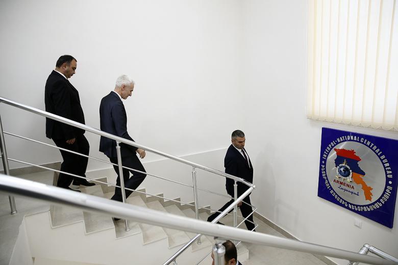 Ինտերպոլի գլխավոր քարտուղար Յուրգեն Շթոքը Վահե Ղազարյանի ուղեկցությամբ այցելեց Հայաստանում Ինտերպոլի ազգային կենտրոնական բյուրո, որտեղ ծանոթացան ստորաբաժանման աշխատանքին։