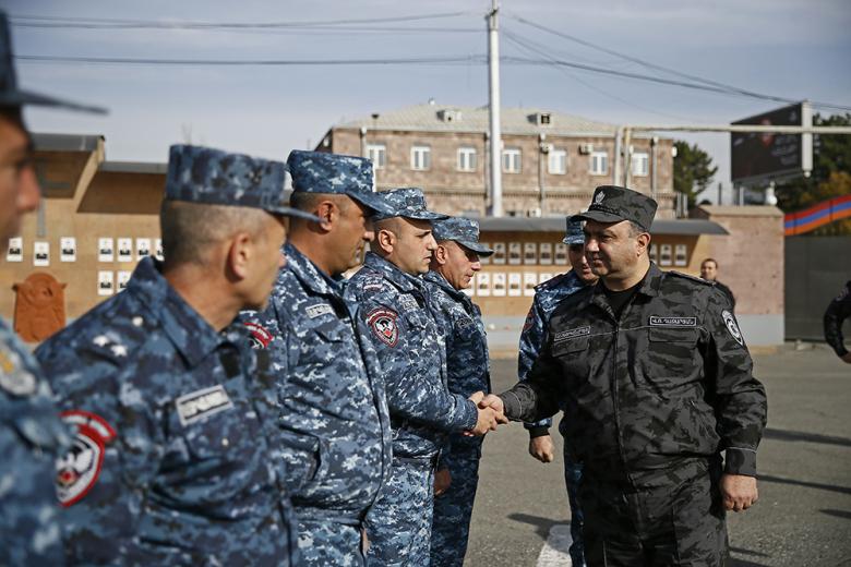 Տարելիցի կապակցությամբ ՀՀ ոստիկանության պետ, ոստիկանության գեներալ-մայոր Վահե Ղազարյանն այցելեց ոստիկանության զորքերի զորամասերից մեկը։