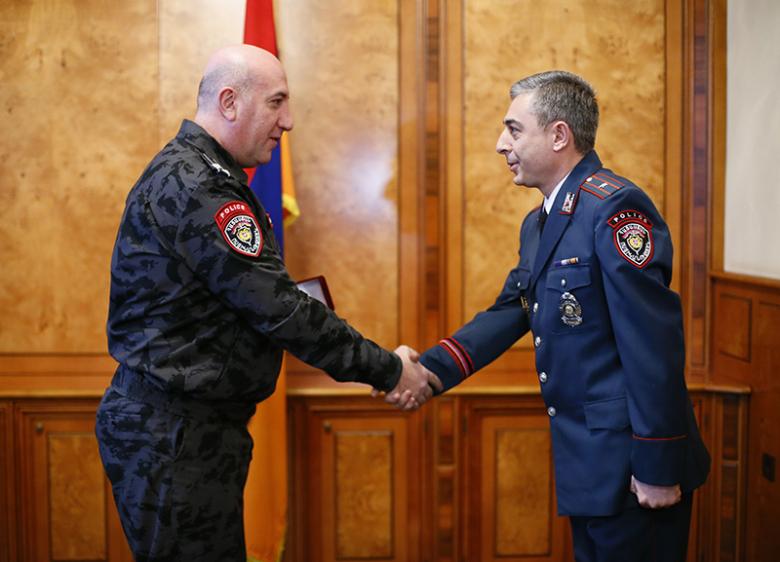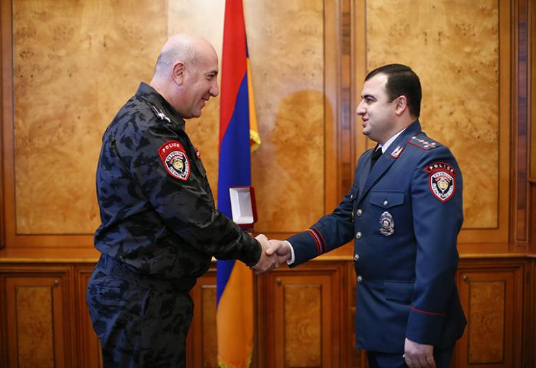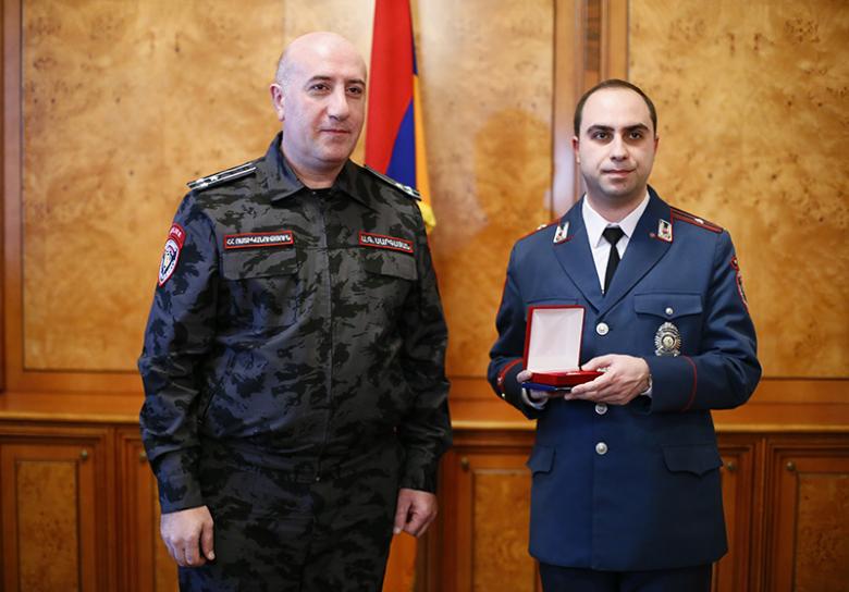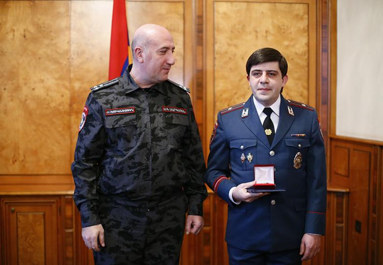 Արման Սարգսյանի հրամաններով ոստիկանության ներքին անվտանգության վարչության մի խումբ ծառայողներ բարեխիղճ ծառայության համար պարգևատրվեցին մեդալներով, կրծքանշաններով ու պատվագրերով։