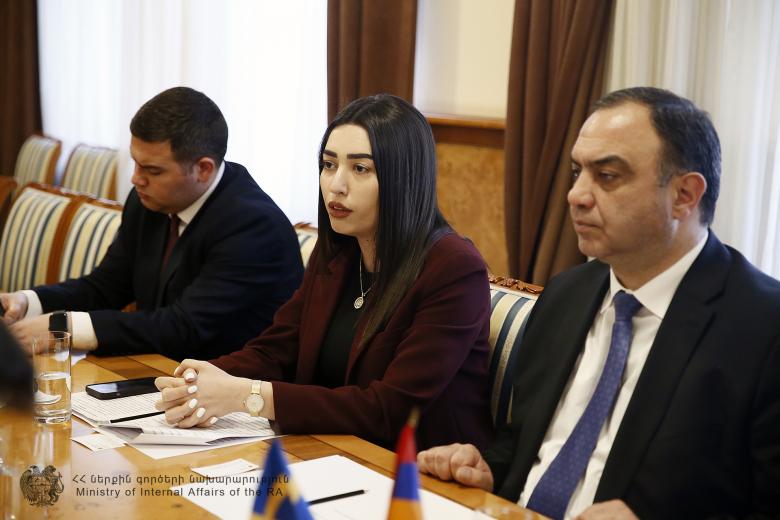 Հանդիպմանը մասնակցում էին նաև Ներքին գործերի նախարարի տեղակալ Արփինե Սարգսյանն ու ՆԳՆ ոստիկանության շտաբի պետ Արմեն Մկրտչյանը։
