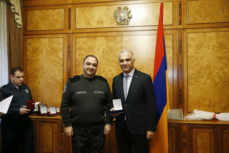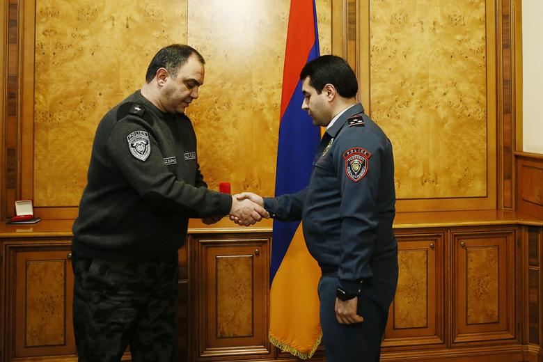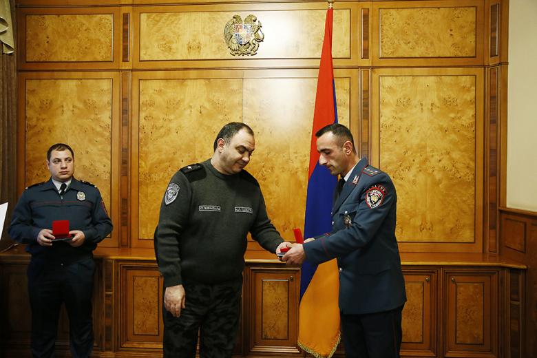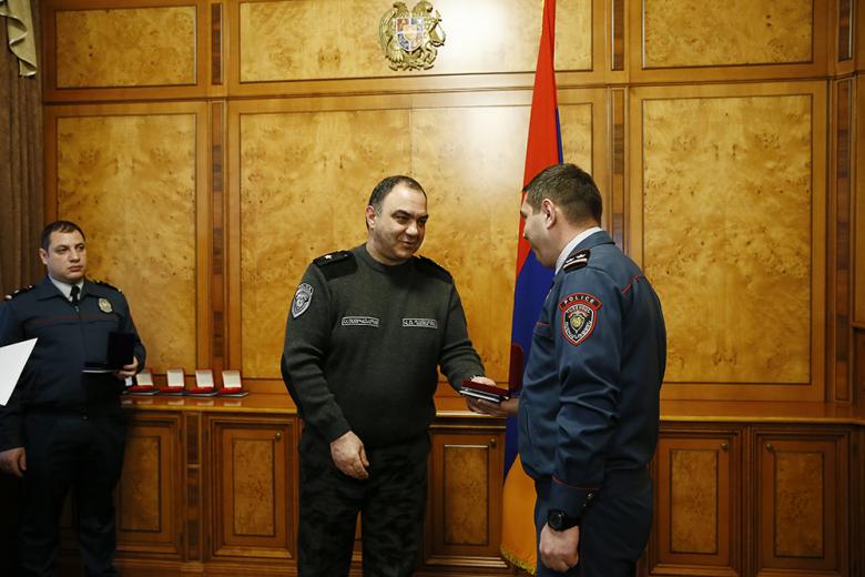 Քրեական ոստիկանության գլխավոր վարչության և ոստիկանության Արթիկի բաժնի ծառայողները պարգևատրվեցին «Օրենքի պատվար», «Իրավակարգի ամրապնդման համար» մեդալներով և «Ոստիկանությունում գերազանց ծառայության համար» կրծքանշաններով։