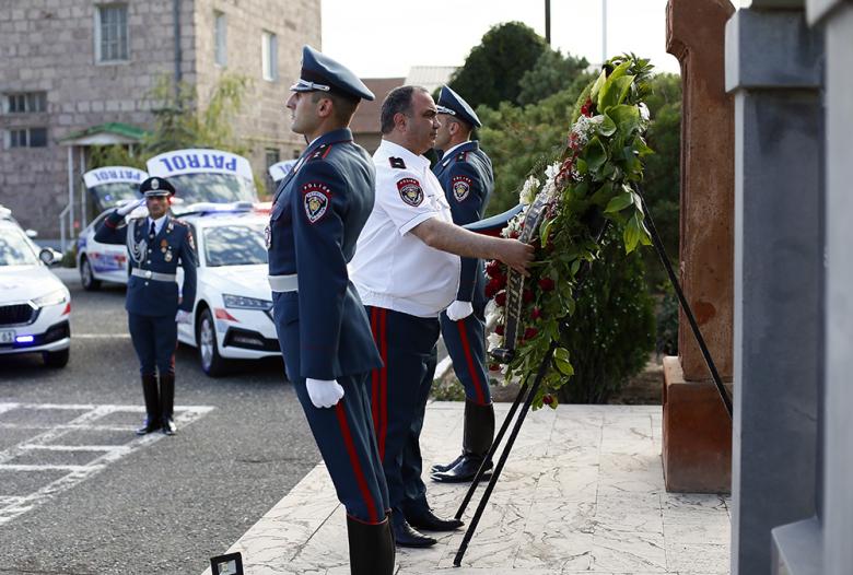 Ոստիկանության պետը նախ ծաղիկներ խոնարհեց ծառայողական պարտականությունները կատարելիս զոհված ոստիկանների հուշարձանին։