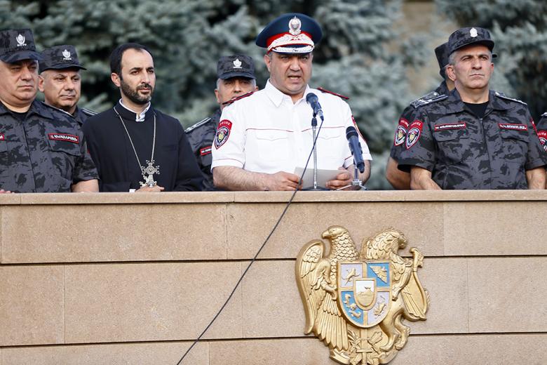 Դիմելով պարեկներին՝ նա նշեց, որ ամենամեծ պատիվը օրենքին ու ժողովրդին ծառայելն է և հորդորեց արժանի լինել իրենց ընտրությանը, ոստիկանության լավագույն ավանդույթներին և այն ծառայակիցների անմար հիշատակին, որոնք ծառայողական պարտականությունները կատարելիս հերոսաբար զոհվեցին։