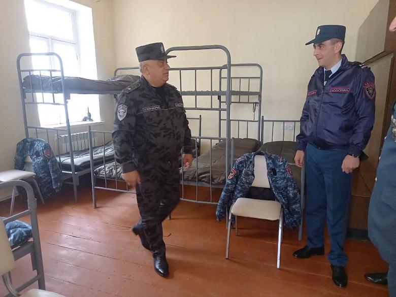 Նրանք եղել են նաև ոստիկանության զորքերի Սյունիքի մարզի տեղակայման վայրերում, հետևել ոստիկանների ծառայությանն ու ծանոթացել կենցաղային պայմաններին։