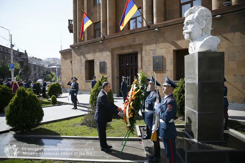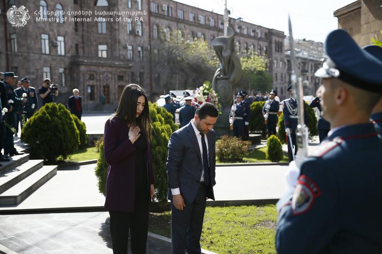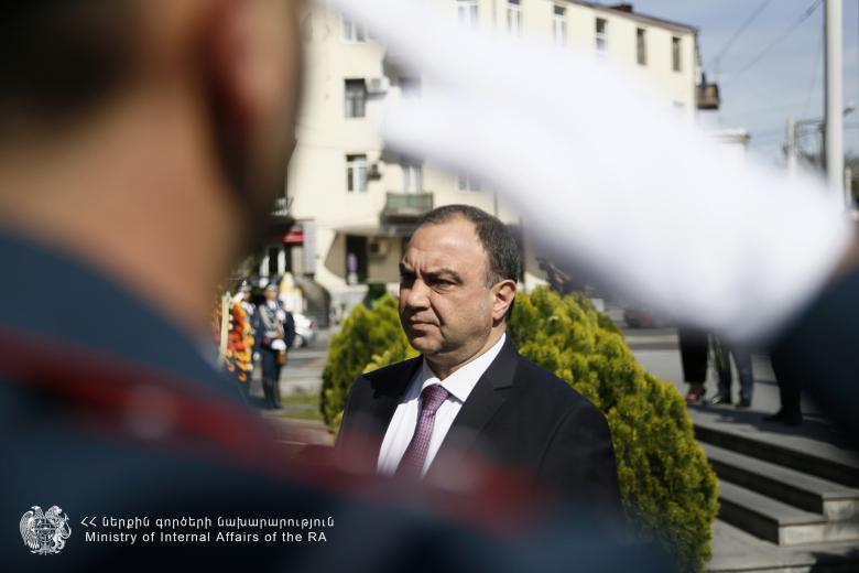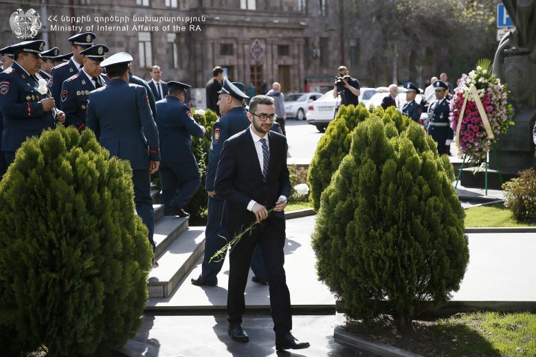 ՀՀ ներքին գործերի նախարար Վահե Ղազարյանը, փոխնախարարներ Արփինե Սարգսյանը, Դավիթ Համբարյանը, ոստիկանության պետ-ՆԳ նախարարի տեղակալ Արամ Հովհաննիսյանը, փրկարար ծառայության տնօրեն-ՆԳ նախարարի տեղակալ Կամո Ցուցուլյանն ու ոստիկանության ղեկավար կազմը ծաղկեպսակներ դրեցին ու ծաղիկներ խոնարհեցին Հայաստանի ներքին գործերի առաջին նախարար Արամ Մանուկյանի կիսանդրուն և «Իրավակարգի զինվորին» հուշարձանին։