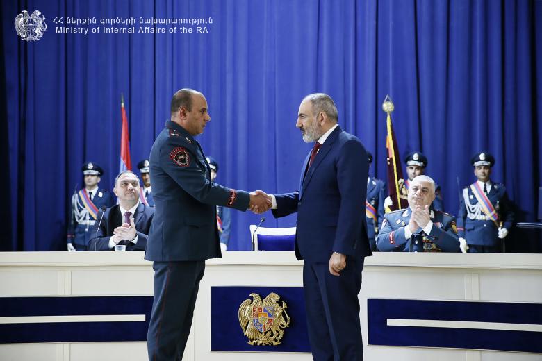 Նախ ուզում եմ բոլորիս շնորհավորել Ոստիկանության օրվա առիթով և ձեզ յուրաքանչյուրիդ և բոլորիդ շնորհակալություն հայտնել ծառայության համար, որովհետև Ոստիկանությունն այն կառույցն է, որը պետականության ողնաշարն է, և պետականության ողնաշարը պետք է ամեն օրվա հետ ավելի ուժեղ լինի: Մենք այս մասին շատ ենք խոսել. հիմա Ոստիկանությունը և ընդհանրապես, ներքին գործերի համակարգը մեծ վերափոխումների գործընթացի մեջ է: Ուզում եմ ընդգծել, թե որն է այդ փոփոխությունների առանցքային նպատակը և իմաստը: Առանցքային նպատակը և իմաստը նոր, բարձր և շարունակական բարձրացող ստանդարտներ սահմանելն է Ոստիկանության աշխատանքի համար, և ես ուզում եմ ընդգծել այս ճանապարհի երեք ուղղություն: