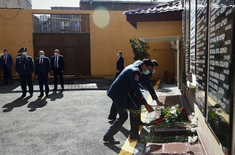 В тот же день премьер-министр РА Никол Пашинян посетил Полицию. Премьер-министр, начальник Полиции и высокопоставленные офицеры возложили цветы к «Стене памяти» в честь погибших во имя Отечества полицейских и минутой молчания отдали дань уважения и памяти.