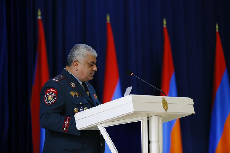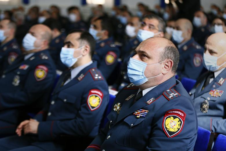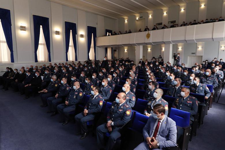Вначале присутствующие почтили минутой молчания память погибших в ходе 44-дневной войны полицейских, после чего со вступительной речью выступил начальник Полиции Ваге Казарян. Он поздравил полицейских, ветеранов Полиции и семьи полицейских с профессиональным праздником. Ваге Казарян поблагодарил семьи погибших полицейских. Начальник Полиции поблагодарил полицейских за добросовестную службу в нелегком деле по поддержанию правопорядка и законности, поблагодарил офицеров, которые с первых дней войны были задействованы в выполнении боевых задач и полностью выполнили свой долг перед Родиной.