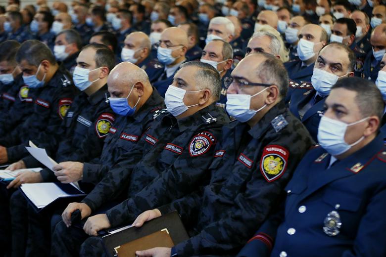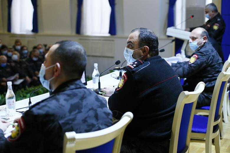 В своем вступительном слове начальник полиции Ваге Казарян отметил, что проблемы семей полицейских, погибших и раненых во время боевых действий, всегда должны быть в центре внимания, и их необходимо решать. Он также поблагодарил служащих Полиции, в частности офицеров Войск Полиции и Патрульно-постового полка, за добросовестный труд и высокую ответственность в сложный и напряженный период.