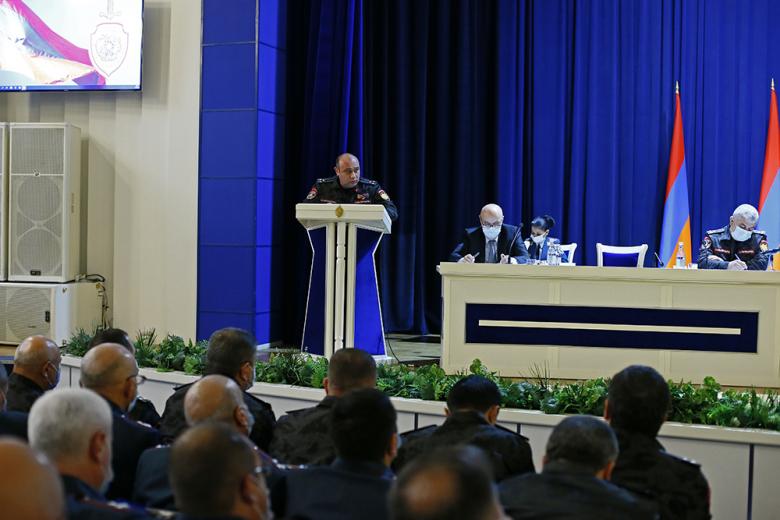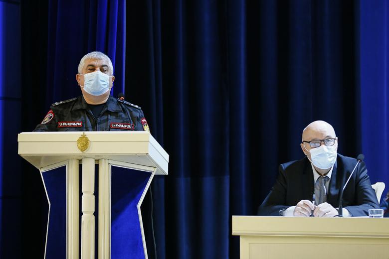 С докладом об итогах оперативно-розыскной деятельности служб и территориальных органов Полиции за 2020 год выступил первый заместитель начальника Полиции Арам Оганнисян.