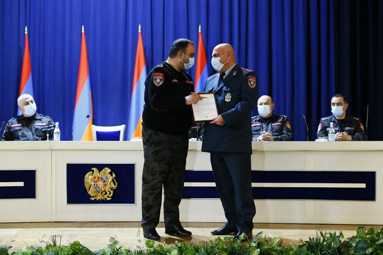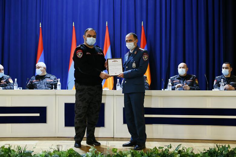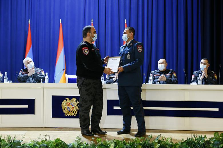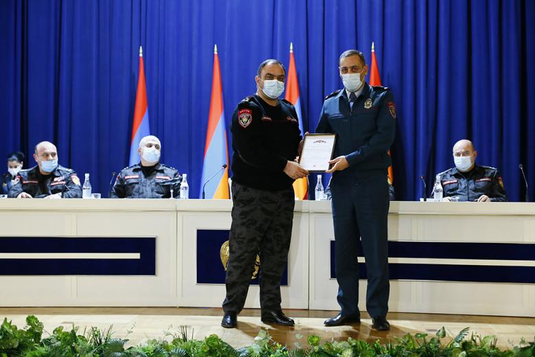По окончании заседания коллегии решением специальной комиссии Полиции были награждены Шенгавитский отдел Управления города Еревана и Арташатский отдел Управления Араратского марза Полиции были признаны лучшими в оперативно-служебной деятельности 2020 года.